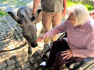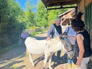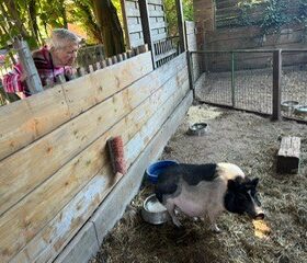 Die Tiere standen bereits bereit und freuten sich auf viele Streicheleinheiten und kleine Leckereien. Für unsere Gäste war es wie ein Besuch auf einem Bauernhof: umgeben von vielen Bäumen, die angenehmen Schatten spendeten, konnten wir die ruhige Atmosphäre in vollen Zügen genießen.